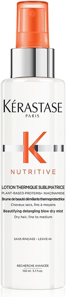 A Lotion Thermique Sublimatrice (spray) costuma ser uma escolha mais “leve”. O Nectar Thermique costuma combinar bem com fios médios a grossos.